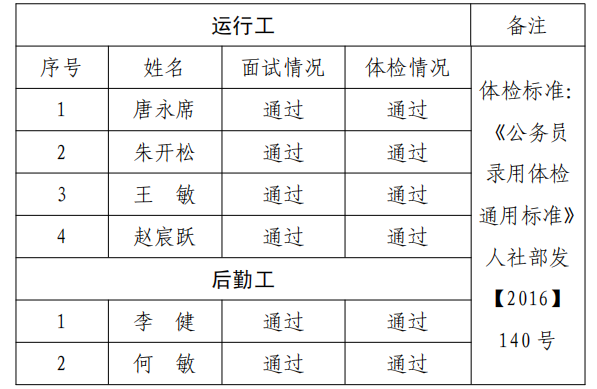 根据《绵阳市市政设施维护中心关于公开招聘编外人员的公告》,经1月13日至17日现场和网上报名,通过资格审查、面试考核、体检后,现将聘用人员名单公示如下: