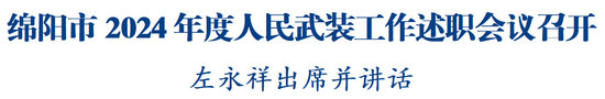 绵阳新闻网讯 2月20日,绵阳市2024年度人民武装工作述职会议召开,副省长、市委书记、绵阳军分区党委第一书记左永祥出席会议并讲话。他强调,要深入贯彻习近平强军思想和新时代军事战略方针,认真落实党中央和省委各项部署要求,坚决扛起党管武装政治责任,不断开创我市国防动员和后备力量建设新局面,为加快建成省域经济副中心作出更大贡献。