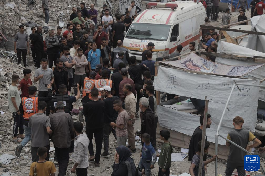 5月15日,在加沙地带北部杰巴利耶难民营,人们在以军轰炸后开展救援。新华社发(阿卜杜勒·拉赫曼·萨拉马摄)