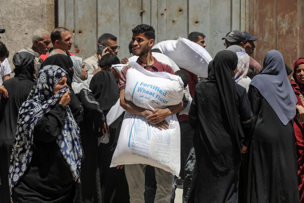 6月26日,巴勒斯坦人在加沙城领取援助物资。新华社发(里泽克·阿卜杜勒贾瓦德摄)