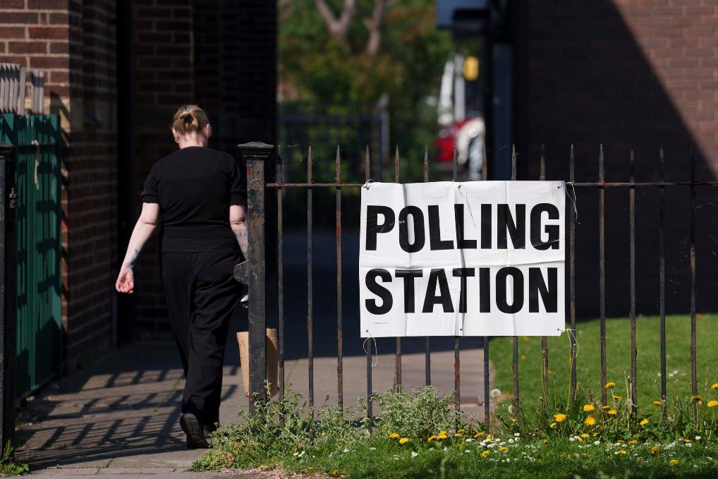 5月1日,在英国普雷斯顿,一名女子走向一家投票站。新华社发(乔恩·休珀摄)