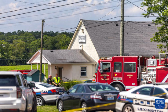 7月13日,执法人员在美国肯塔基州列克星敦市的枪击现场附近工作。新华社/美联