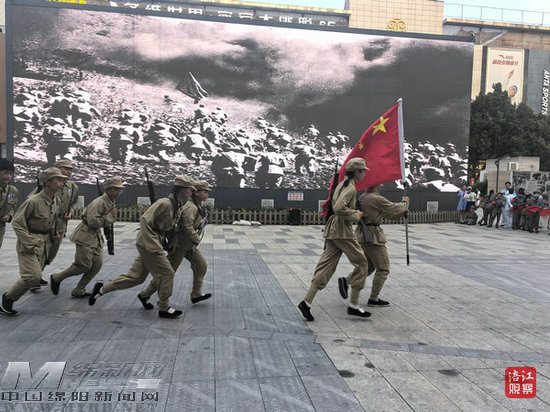 绵阳市兴达广场上人潮涌动,LED屏前突然响起嘹亮的童声合唱,60名身着统一服装的少儿演员列队而出,“热血铸军魂·致敬最可爱的人”八一公益快闪活动就此拉开序幕。