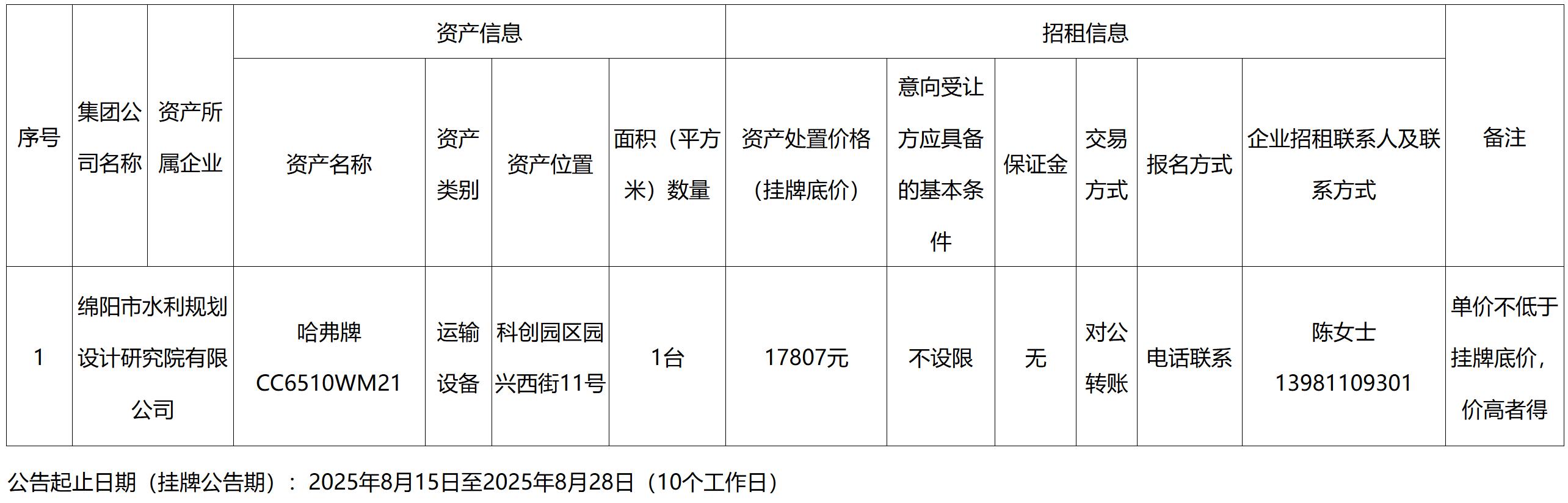 绵阳市水利规划设计研究院有限公司2025年车辆处置项目公告