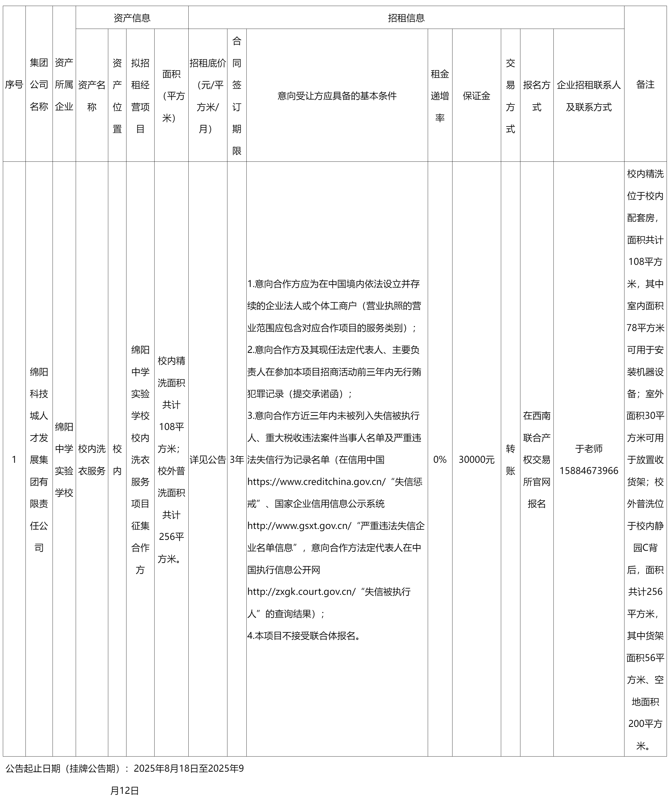 绵阳中学实验学校校内服务商合作项目征集合作方(第二次)公告