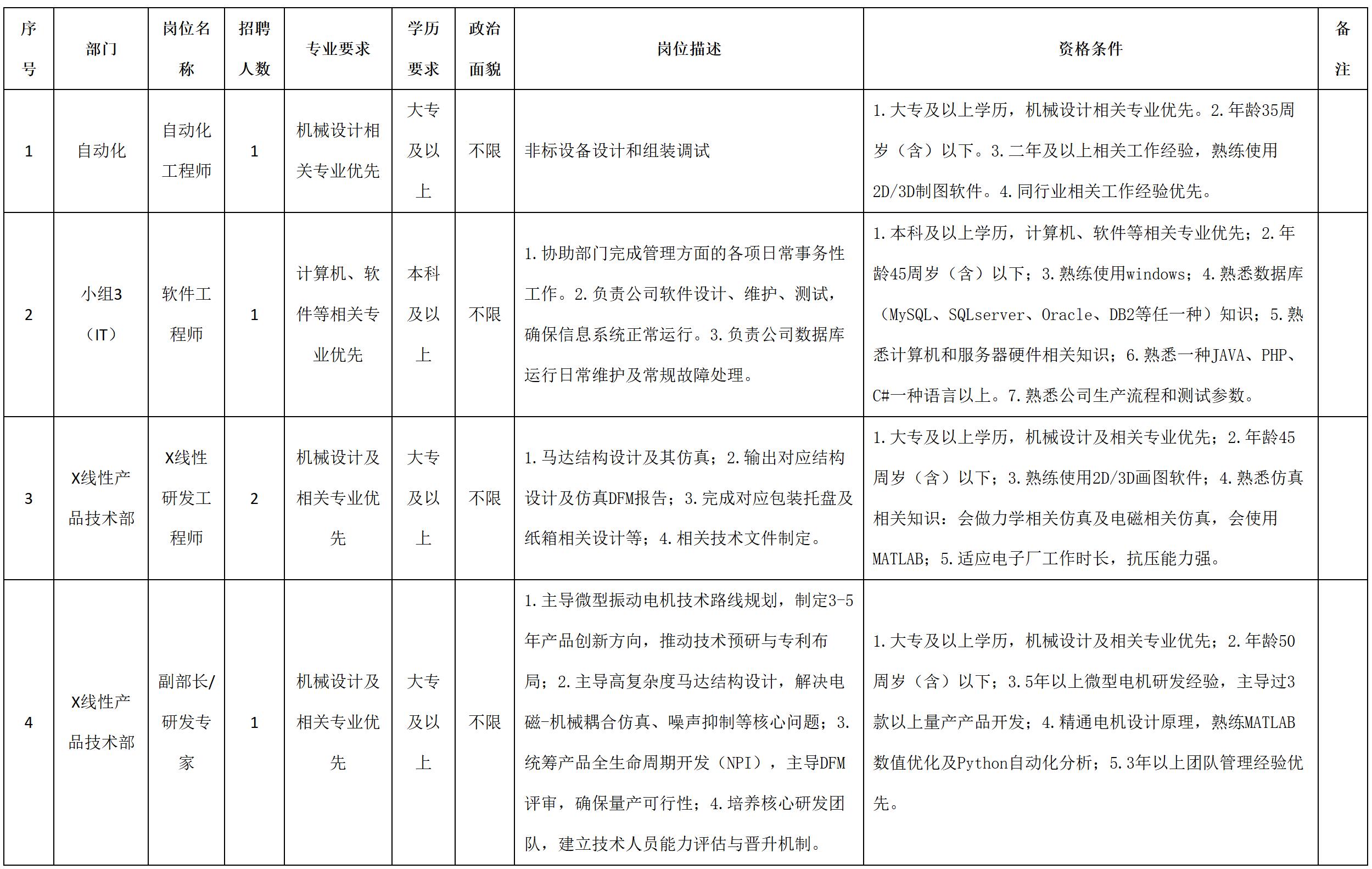 四川安和精密电子电器股份有限公司是绵阳市2012年重点招商引资企业,公司位于中国科技城——绵阳出口加工区。公司专注于智能手机产业链,是国家标准《便携式电子产品用振动电机通用规范》主要起草单位,国家制造业单项冠军培育企业,国家高新技术企业。公司主导产品手机微型振动马达,主要客户有:华为、小米、OPPO、VIVO、联想、索尼、伟创力、富士康等世界知名企业,年产销量行业领先。目前公司在职员工3000余人,管理团队中三分之二人员拥有大专及以上学历,硕士5人,外籍专家3人。公司正在筹建移动互联产业园,以移动互联产业为方向,以智能手机产业链为核心,由元器件制造商向解决方案提供商转变。公司的快速发展需要大量的人才,同时也为人才的快速提升提供了难得的发展机遇与上升空间。如果你有自信,有梦想,欢迎加入我们,共同创造美好的明天!