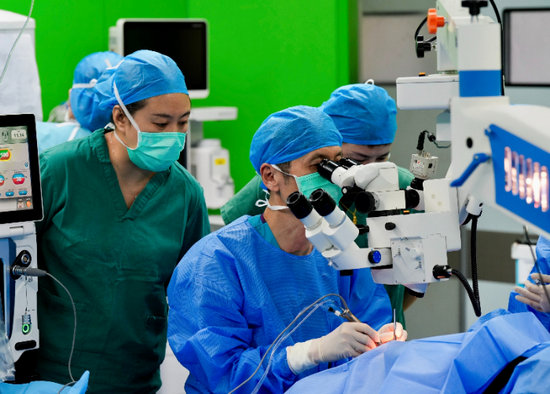 魏文斌带领的眼科专家团队手术及带教现场(施术者为史翔宇教授)