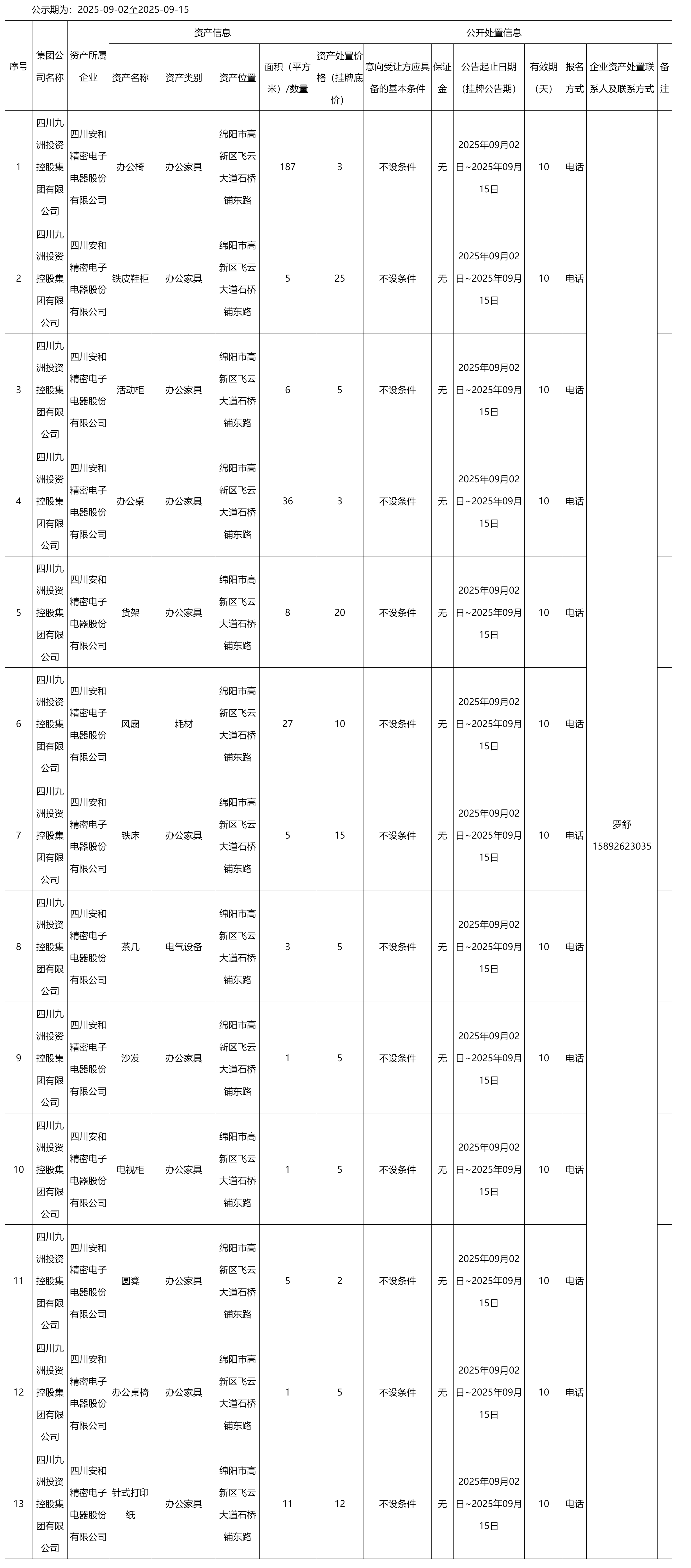 四川安和精密电子电器股份有限公司废旧办公用品资产处置公告