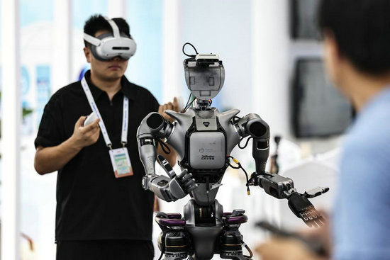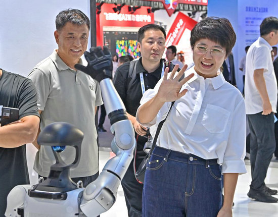 观众在2025全球工业互联网大会现场与机器人互动。新华社记者 周华 摄