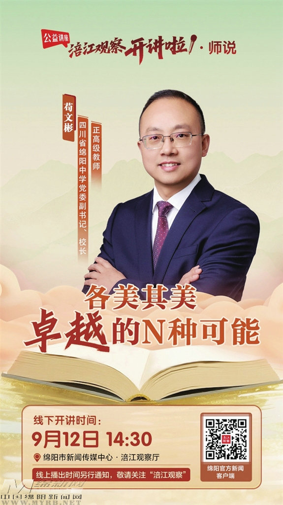 本周五(9月12日),由市委宣传部指导,市教体局、市文广旅局、市卫健委支持,市新闻传媒中心主办、市文化传媒(集团)有限公司承办的“涪江观察开讲啦”公益讲座第一季,即将重磅开启。