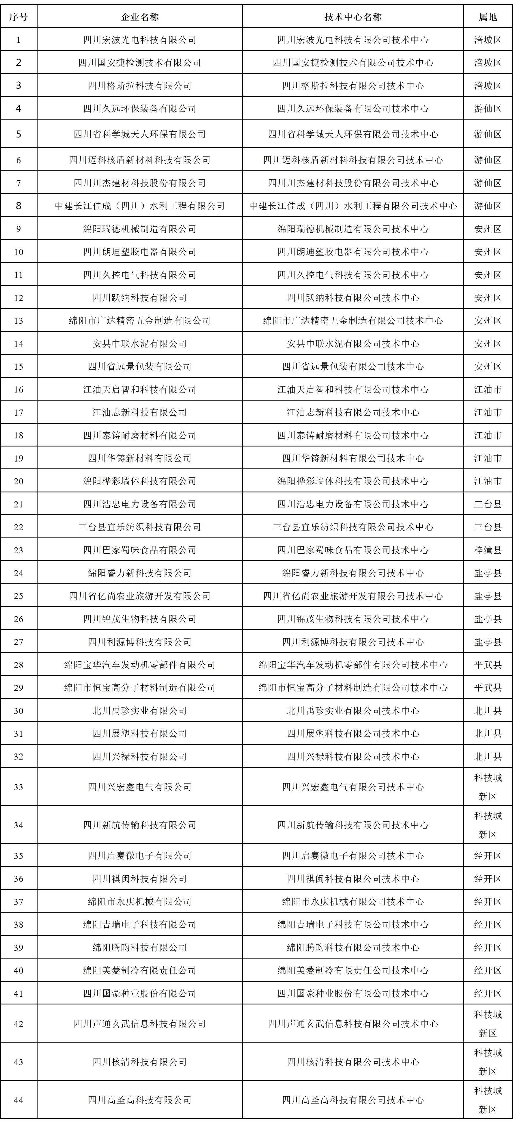 2025年(第23批)新认定绵阳市企业技术中心名单