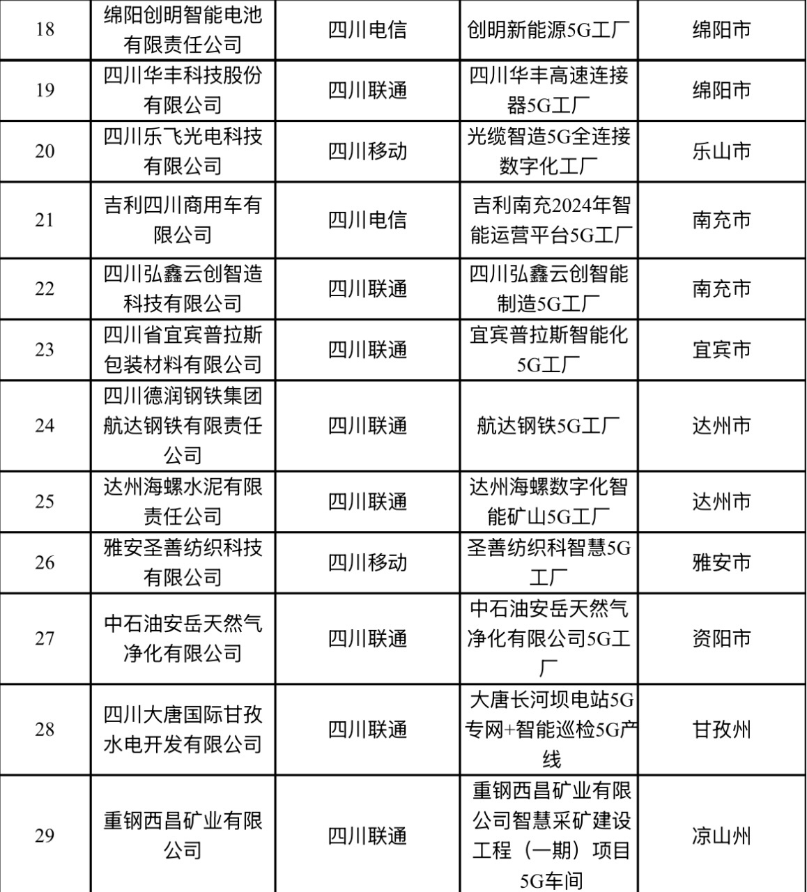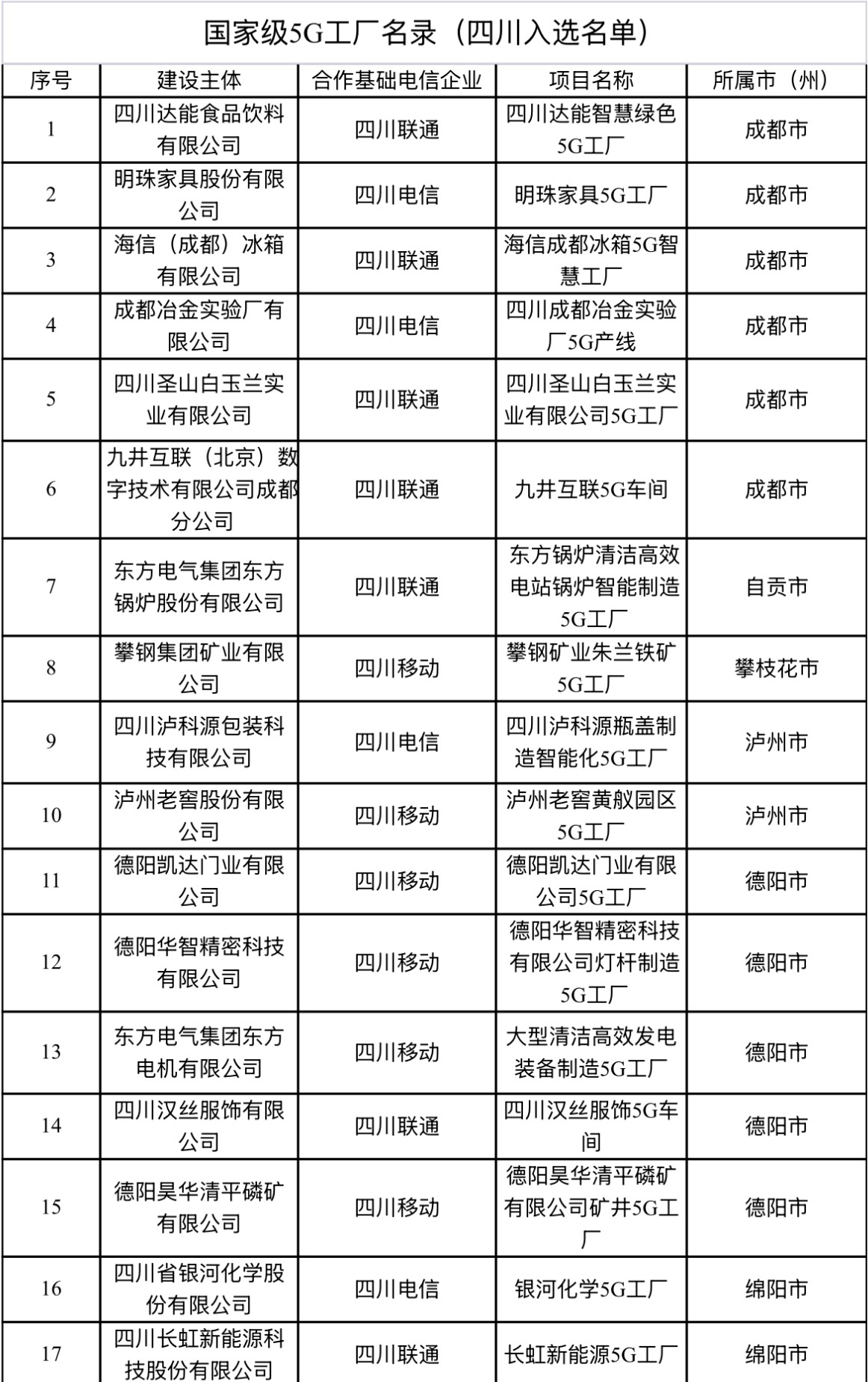 近日,工业和信息化部公布了《2025年5G工厂名录》,全国共560个工厂入选,四川有29个进入名录,入选数量居全国第9位、西部第1位。截至目前,我省国家级5G工厂数量累计达48家。