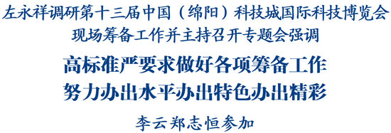 左永祥调研第十三届中国(绵阳)科技城国际科技博览会现场筹备工作并主持召开专题会