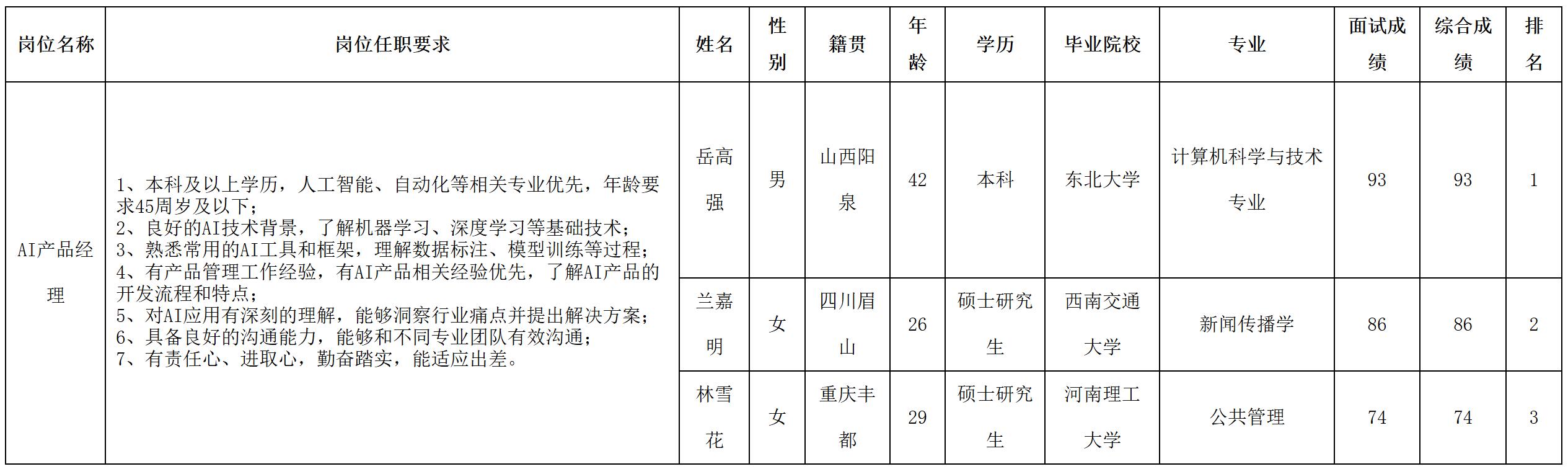 根据四川长虹虹微科技有限公司发布的招聘公告及招聘相关规定,经面试等程序,现将面试成绩予以公示。