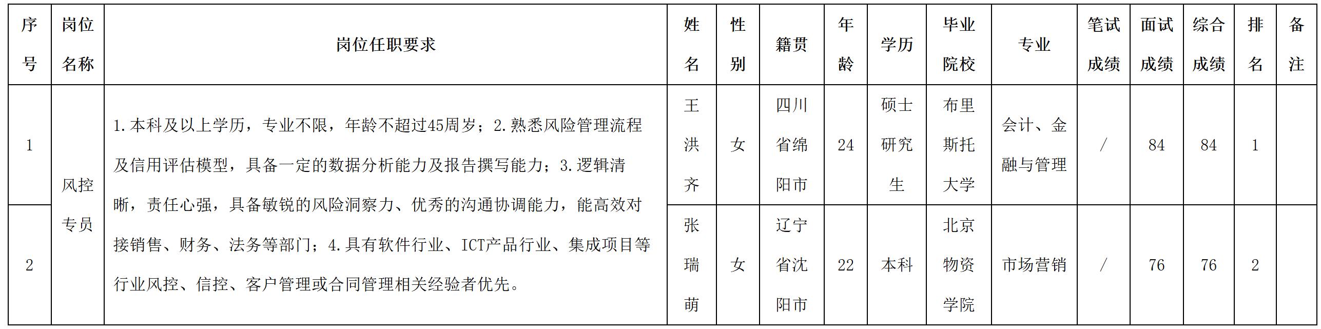 根据四川科瑞软件有限责任公司发布的招聘公告及招聘相关规定,经笔试、面试等程序,现将笔试(面试)成绩予以公示。