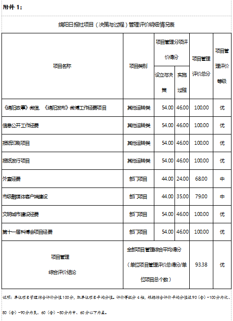 附件1:绵阳日报社项目(决策与过程)管理评价明细情况表