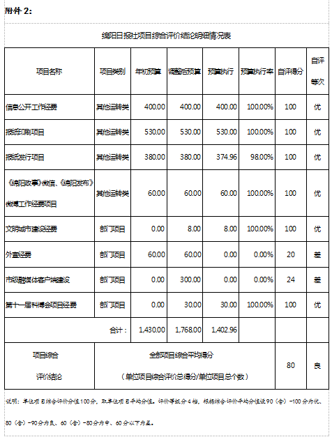 附件2:绵阳日报社项目综合评价结论明细情况表