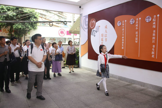 绵阳新闻网讯 9月18日上午,三亚市中小学骨干校长50余人及西南大学、绵阳市教科所相关专家领导共计60余人组成的研修班一行到访成绵路小学教育集团成绵校区,开展了以“文脉绵延展特色 书香致远谱新篇”为主题的参观交流活动,共赴一场书香浸润的教育对话。