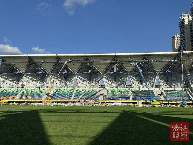 与此同时,看台顶部的膜结构屋面与排水系统安装同步推进,六大施工板块科学统筹。“为保障项目按期交付,现场施工人员已增至300余人,曲臂车、吊车等施工机械达58台(套),钢结构、幕墙、室内装饰、安装工程、体育工艺、附属绿化等工作齐头并进。”三台县体育场提升改造项目生产经理张彰介绍,团队正优化施工流程、抢抓工期,全力确保绵阳队主场赛事顺利举办。