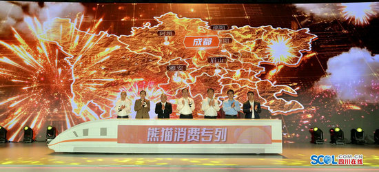 活动现场,发布了40个2025年“蜀里安逸”消费新场景、2025川渝20个不夜地标和20个夜经济新业态示范案例,启动发放了包括餐饮、川酒川茶、“锦绣天府”入川游、“最美川西景观道”自驾消费等消费券在内的“蜀里安逸”消费大礼包;随后,7名重点消费服务领域经营主体代表登台,共同为“熊猫消费专列”启程,标志着“购在中国·四川站”暨第四届中国(四川)国际熊猫消费节正式启动。