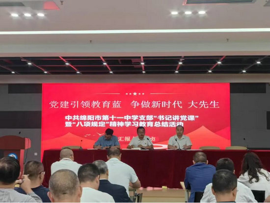 绵阳新闻网讯 为了深入贯彻党的教育方针,推动教育事业高质量发展,9月18日,中共绵阳市第十一中学党支部开展“书记讲党课”暨“八项规定”精神学习教育总结活动。党支部全体党员教师参加会议。