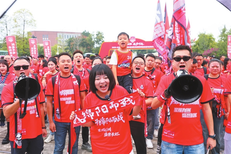 仪式尚未开始,党校内已被热烈氛围笼罩。球迷们难掩激动,脸上满是期待与兴奋。“从联赛官宣起就盼着这一天,客场再远也要去!”身着绵阳队红色助威服的球迷王磊举起印有“绵阳雄起”的头巾,声音里满是欢欣,“咱们球迷就是球队的‘第十二人’,要让队员们在客场也能听到家乡的声音。”