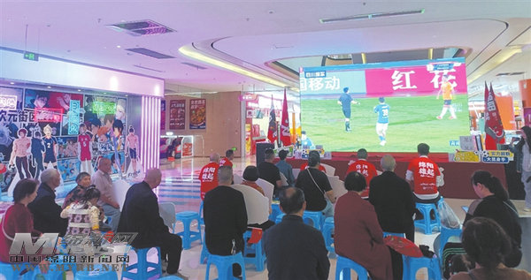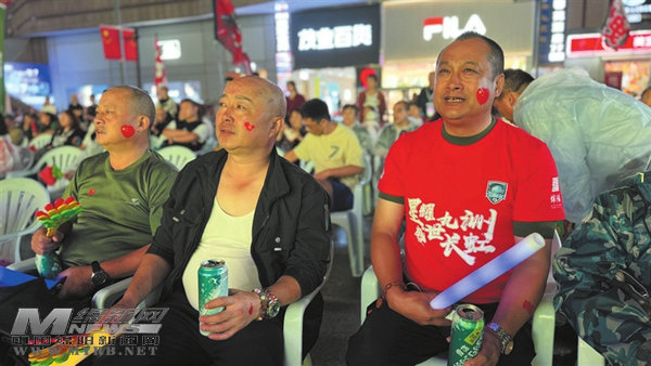 球迷聚在安州商超汇星广场的大屏前观赛