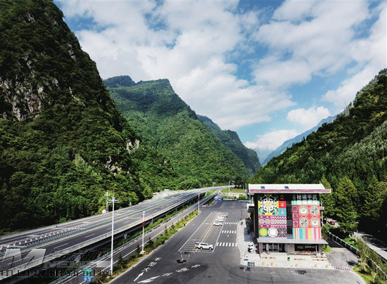 文化在路上传承,故事在途中讲述。白马王朗服务区,白马舞团表演传统歌舞,白羽冠帽、羊皮鼓声再现“火塘边的记忆”;江油服务区融入李白诗意,数字光影营造盛唐气象;平武出口以“大熊猫”造型点睛,与“天下大熊猫第一县”美誉相映成趣。这些文化元素的融入,让九绵高速成为一条承载历史、通向未来的文化长廊。
