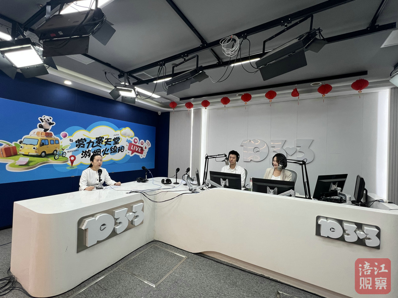 1033融媒直播间内,主持人与市文广旅局、市交通运输局嘉宾联动,解读九绵高速对绵阳旅游产业的意义,分享高速建设中的攻坚故事与绿色发展理念,并联动川内各地电台推介文旅资源、分享自驾攻略。