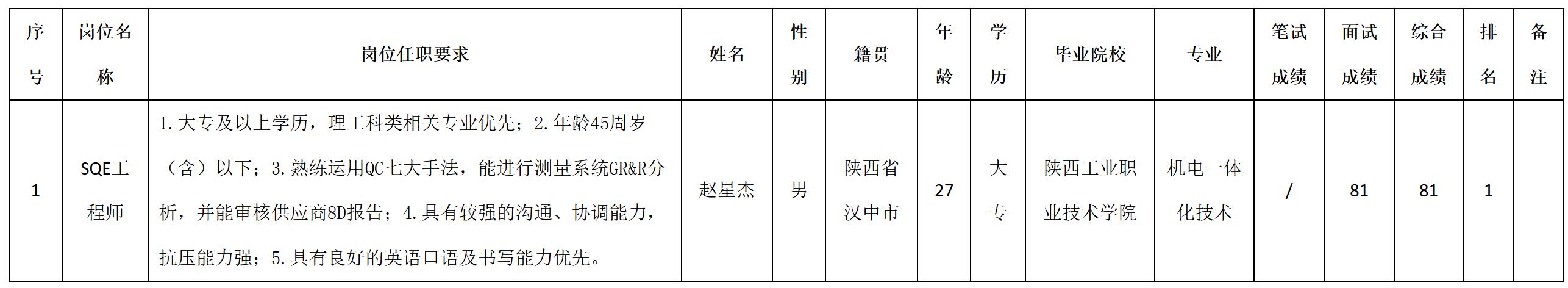 根据四川安和精密电子电器股份有限公司发布的招聘公告及招聘相关规定,经笔试、面试等程序,现将笔试(面试)成绩予以公示。