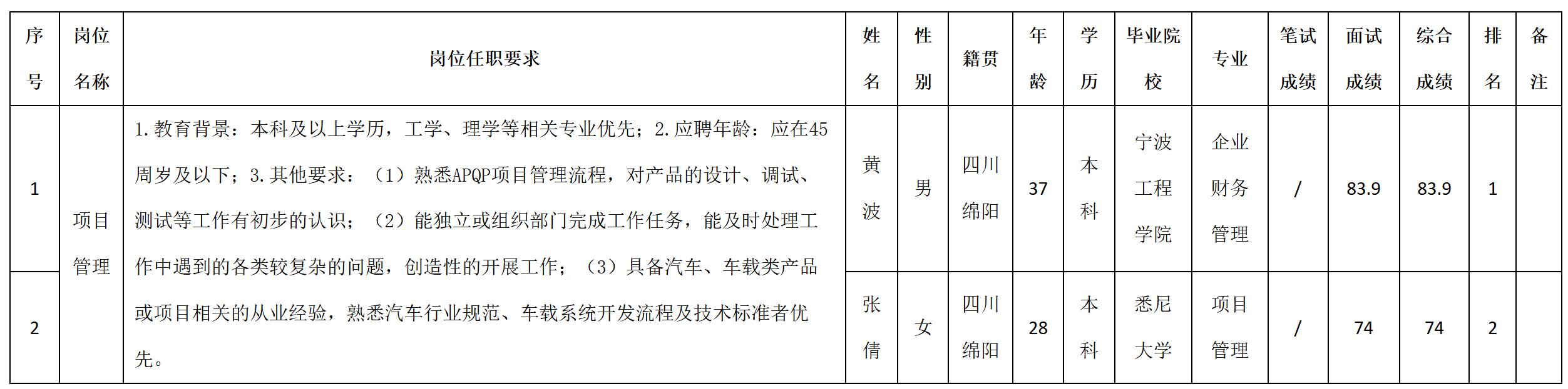 根据四川九洲教育投资管理有限公司发布的招聘公告及招聘相关规定,经笔试、面试等程序,现将笔试(面试)成绩予以公示。