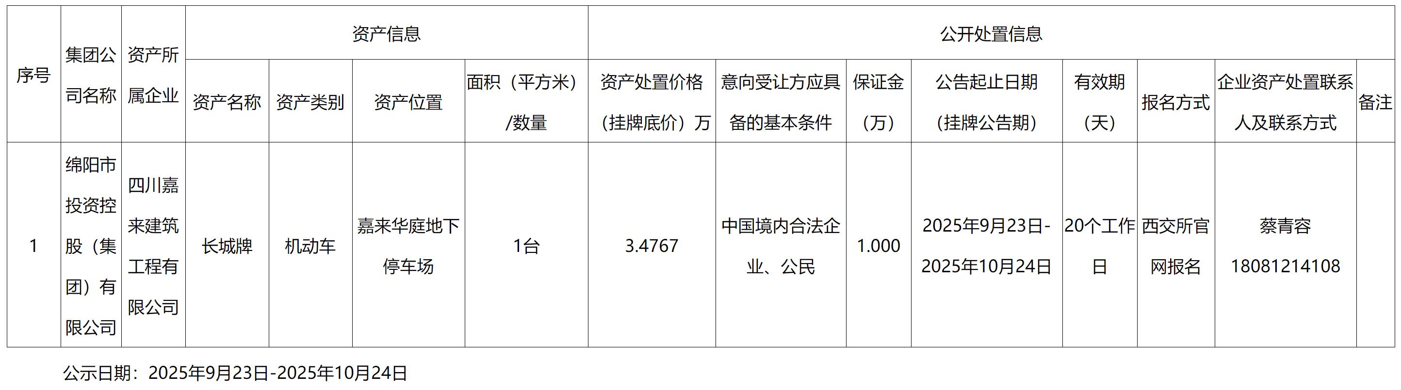 四川嘉来建筑工程有限公司资产处置公告