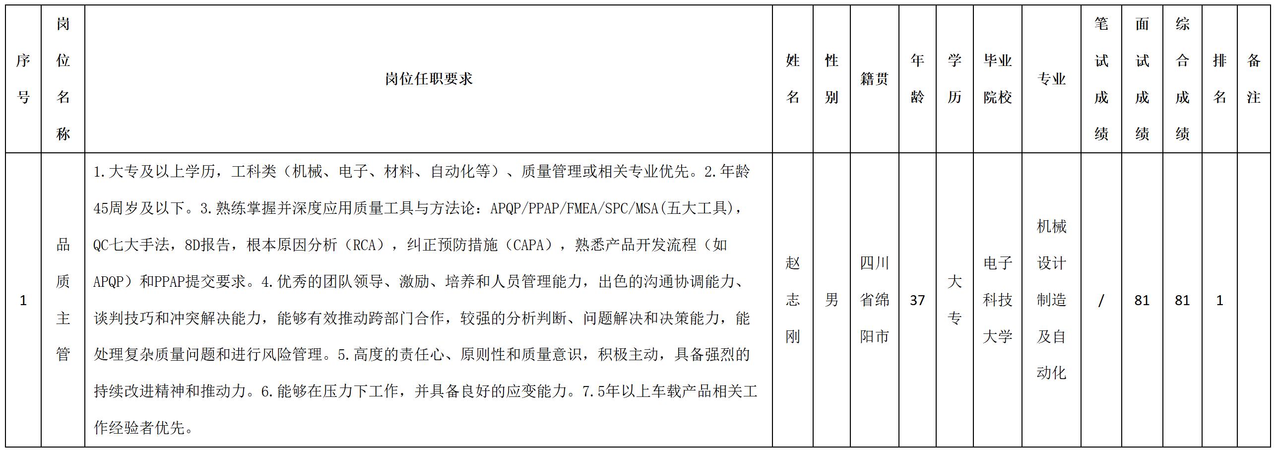 根据四川安和精密电子电器股份有限公司发布的招聘公告及招聘相关规定,现将测试成绩予以公示。