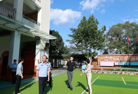 9月23日上午,四川省校园安全交叉检查组莅临绵阳市开元实验幼儿园,开展了以“聚焦安全交叉检查 筑牢校园安全屏障”为主题的2025年秋校园安全督导检查工作。该园党支部书记、园长刘朝霞等相关人员现场汇报工作。游仙区教体局安全股、区公安局、涪江派出所等相关领导陪同检查。