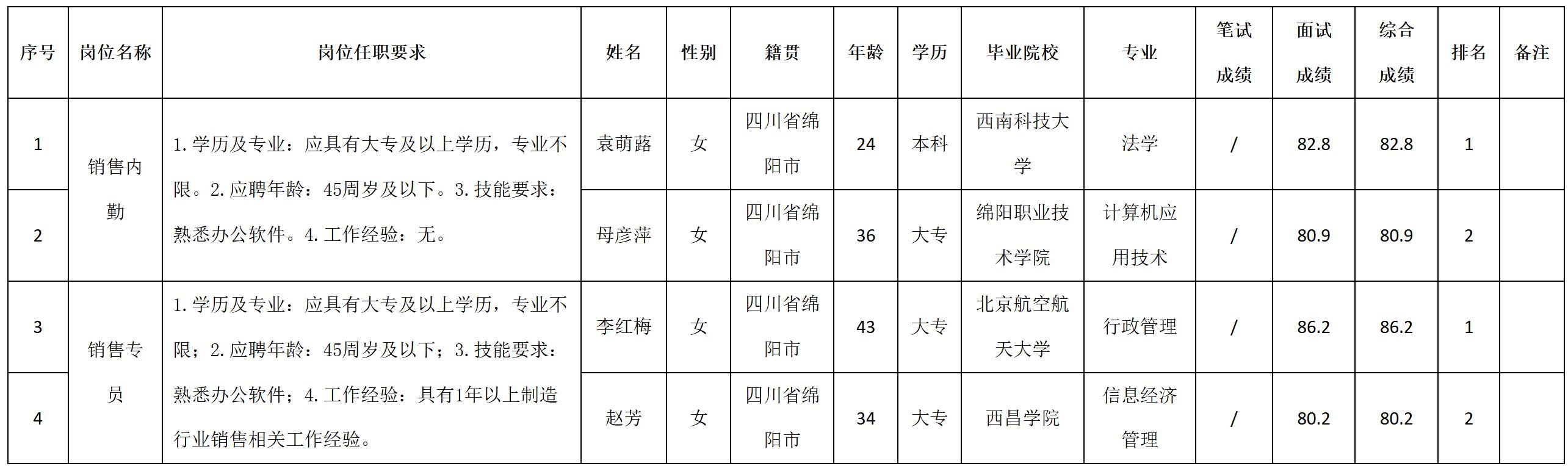 根据四川九州光电子技术有限公司发布的招聘公告及招聘相关规定,现将测试成绩予以公示。