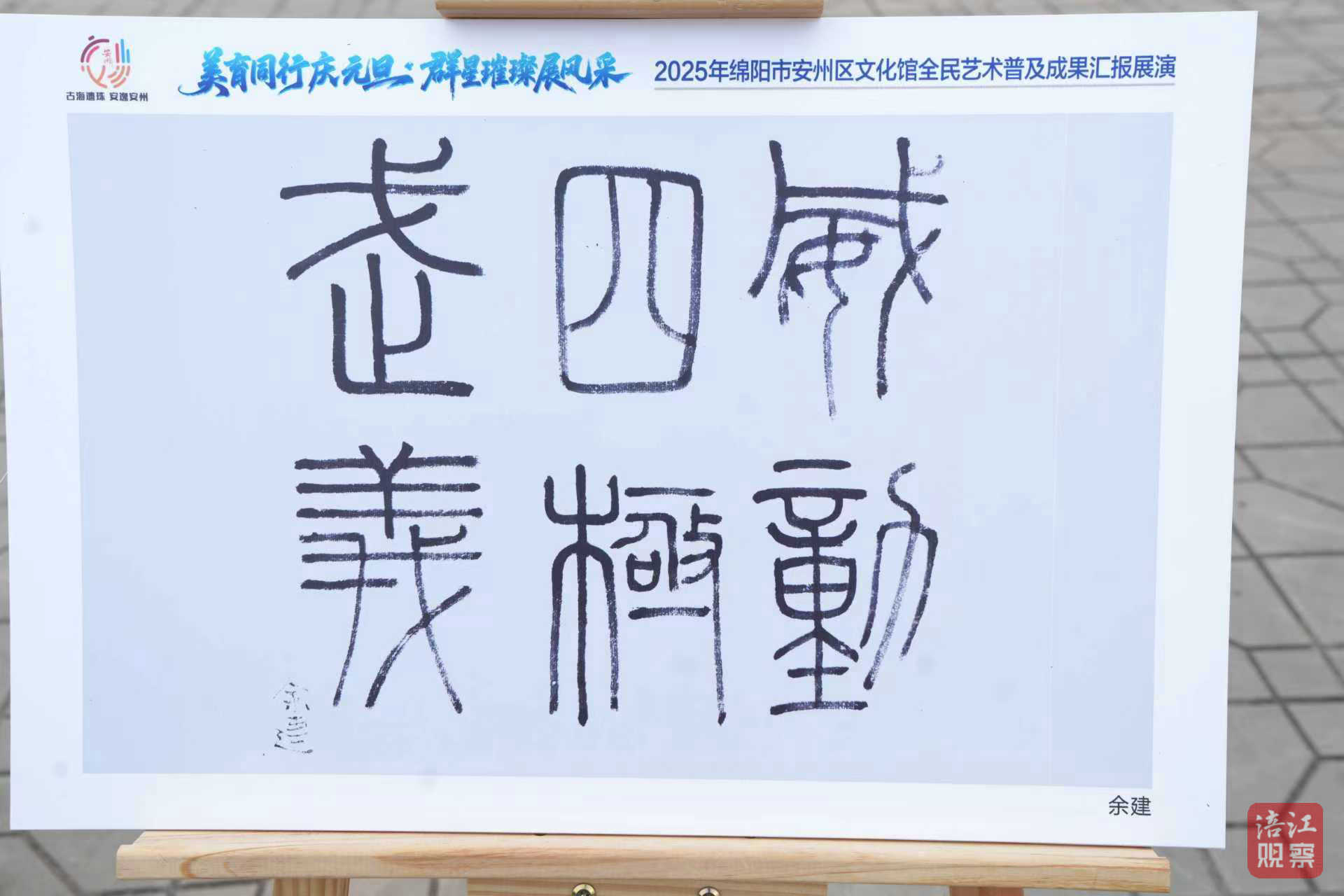 在安州区文化广场,“美育同行庆元旦·群星璀璨展风采”全民艺术普及成果汇报展演举行。这场集艺术展演、非遗展示与书画展览于一体的文化盛宴,以多元艺术形式集中呈现全区全民美育工作成效,为市民带来一场兼具观赏性与文化性的视听享受。