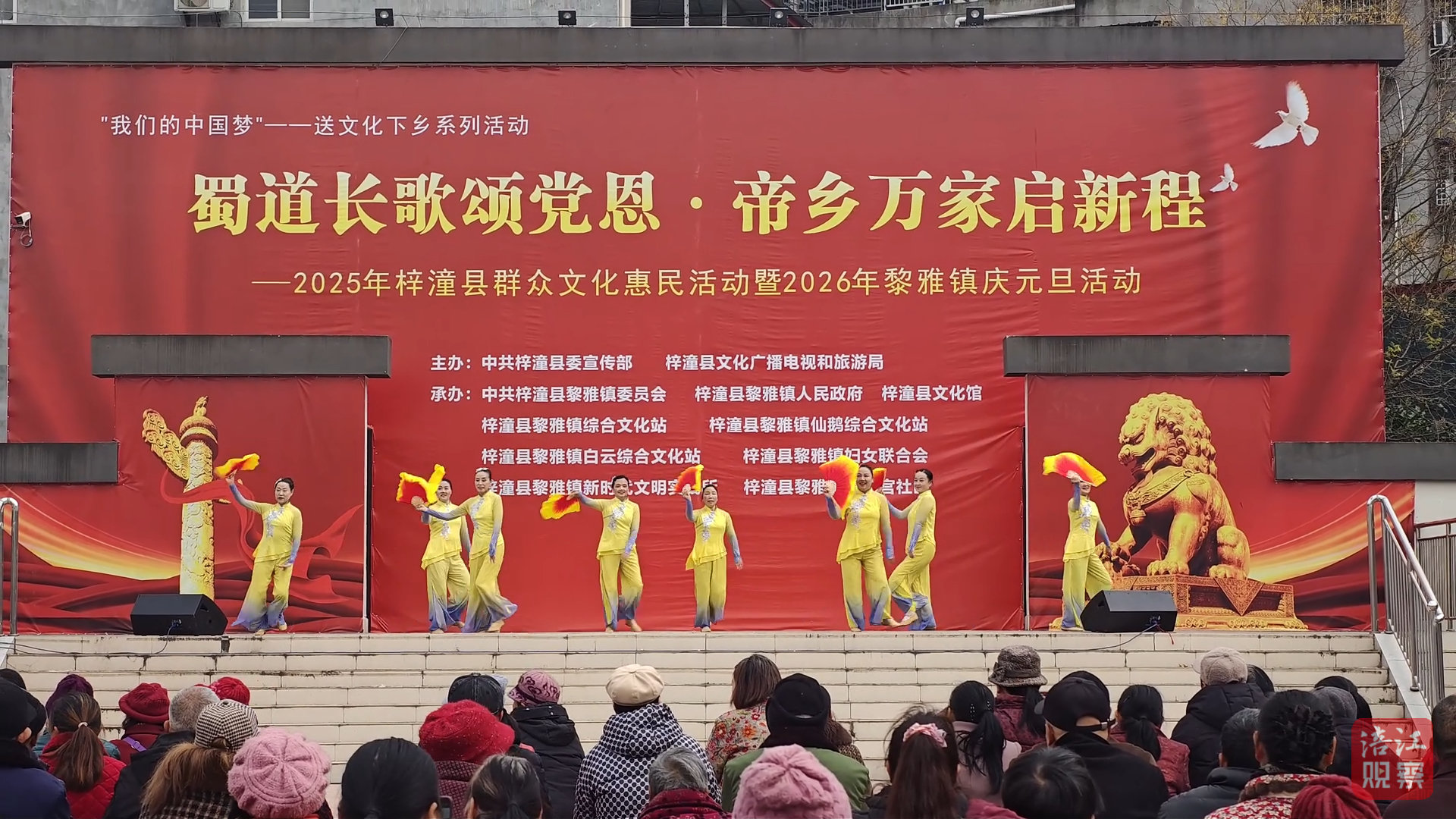 在梓潼县,“蜀道长歌颂党恩·帝乡万家启新程”送文化下乡活动在黎雅镇文化广场精彩开启,让百姓在家门口共享节日喜悦。