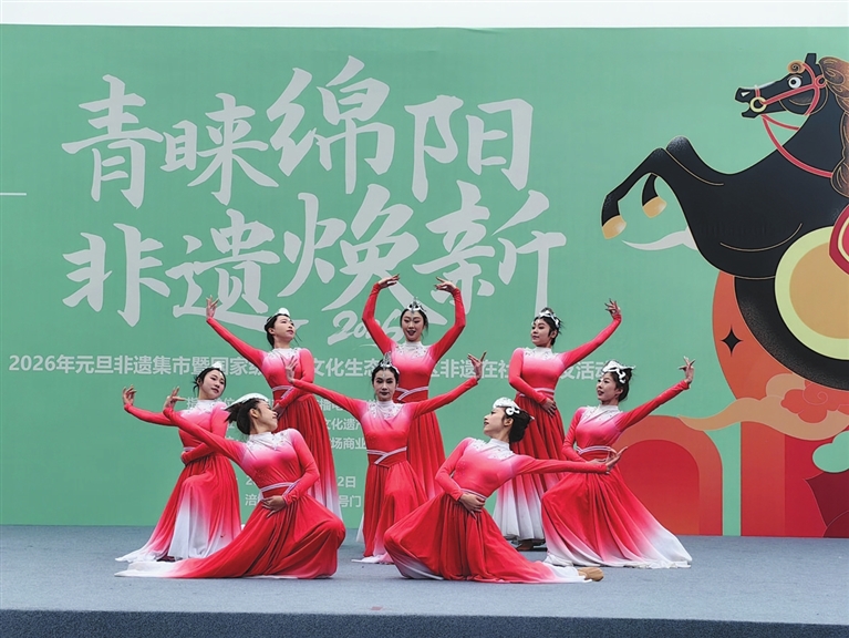 绵阳新闻网讯 1月1日,虽然绵阳城区天气阴冷,但涪城万达广场内却人头攒动、暖意融融。当天,2026元旦非遗集市暨国家级羌族文化生态保护区非遗在社区普及活动在此火热开启。活动集舞台展演、非遗展销、美食品鉴于一体,为市民献上了一道充满传统韵味的节日文化大餐。