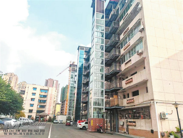 工行宿舍新安装的户外电梯。 刘玉明 摄