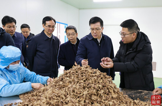 2026年1月4日,省委常委、市委书记左永祥在四川康养健生物科技有限公司,听取企业标准化种植、产品精深加工等情况,察看相关中药材系列产品展示。