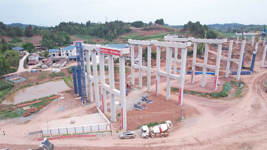 成渝高速扩容中和枢纽互通施工现场。图片由四川成内渝高速公路有限责任公司提供
