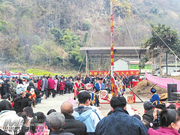 随着活动推进,现场氛围持续升温。身着羌族特色服饰的表演者轮番登场,献上极具民族风情的文化盛宴。悠扬的羌族歌舞婉转灵动,表演者以嘹亮歌声、舒展舞姿尽显羌乡儿女的热情豪迈,旋律与舞步间流淌着深厚的民族文化底蕴;羌族非遗传统活动“上刀山”,更是将气氛推向高潮,表演者赤脚踩在锋利的刀梯上稳步向上攀爬,每一个动作都让观众屏住呼吸,精彩表演赢得观众阵阵掌声,让游客近距离领略了羌族民俗的惊险与神奇。