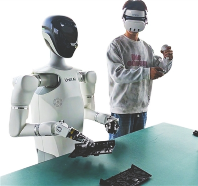 “注意看仪表参数,转鼓转速再微调一下!”近日,在四川省具身智能机器人训练场三楼,数据采集员正通过遥操设备,指导一台人形机器人反复练习柔性穿线动作。抓取、穿引、放置,每一个细微动作都被摄像头精准捕捉,源源不断地“喂”给训练模型。