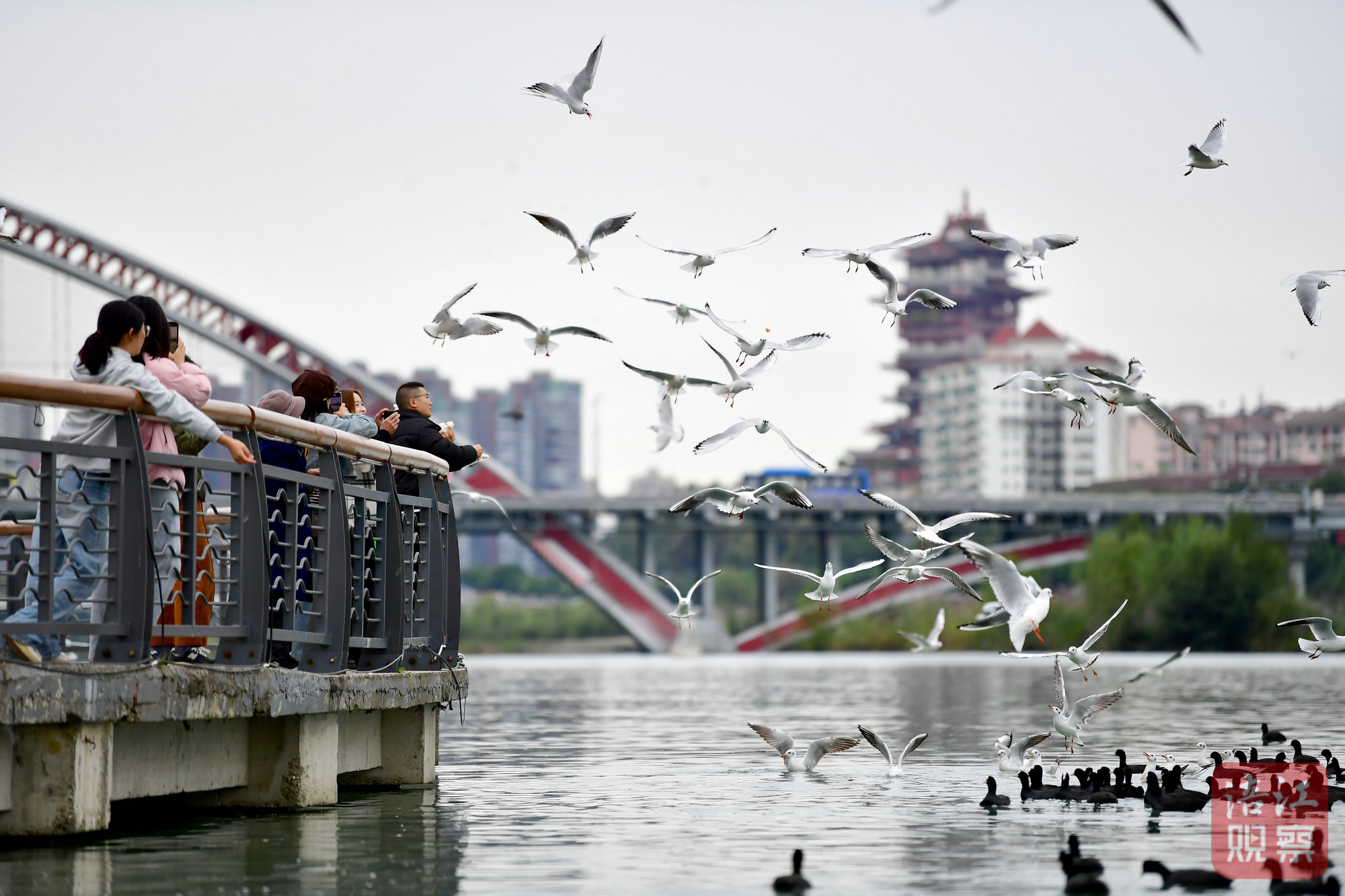 红嘴鸥在绵阳三江湖国家湿地公园自在腾飞。涪江观察记者 王勇摄