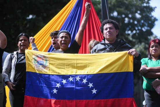 1月3日,在委内瑞拉首都加拉加斯,民众在米拉弗洛雷斯宫附近集会。新华社发(马科斯·萨尔加多摄)