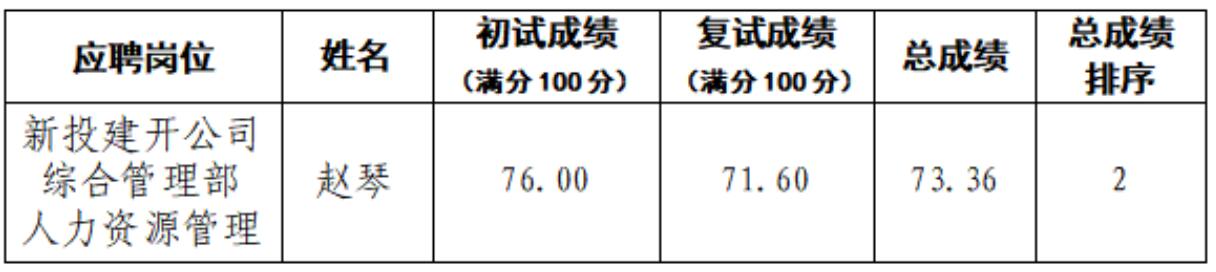 《绵阳科技城新区投资控股(集团)有限公司(含所属公司)人力资源需求外部公开招聘暨市场化选聘应聘人员复试成绩公示(2025年第三批次·第二部分)》已于2025年12月22日挂网公告,在背景调查环节,新投建开公司综合管理部人力资源管理岗位梁路沙自愿放弃背景调查。根据用人单位意见,结合该岗位其他应聘者学历及资格审核、初试成绩、复试成绩等综合评估,现对该岗位拟顺位递补背景调查的应聘者赵琴同志予以公示。