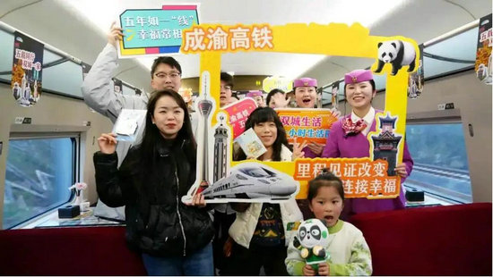 成渝高铁开通五周年时旅客打卡(成都铁路局供图)