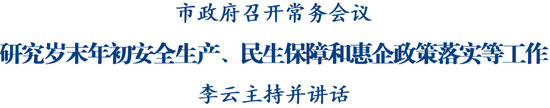 会议强调,要坚决守牢安全底线,加强春节等重要节点安全生产形势研判,严格落实安全防范各项措施,深入实施安全隐患大起底大排查大整治行动,用好安全生产问题隐患曝光片、12345举报平台和企业内部举报奖励办法等措施,广泛发动群众参与安全治理,全力消除各类安全风险隐患,确保全市安全形势总体稳定。要持续加强民生保障,深入开展“寒冬送温暖”专项救助行动,加大对困难群体救助帮扶,扎实做好“菜篮子”“米袋子”“果盘子”等重要民生商品生产、调运、供给以及价格监控等工作,确保群众温暖过冬、平安过节。要做好生态环境保护工作,全力推进冬季大气污染防治攻坚,坚决守住生态环境质量“只能更好、不能变坏”的刚性底线;加强禁燃禁放区域政策宣传解释,引导群众文明过节、绿色低碳过节。