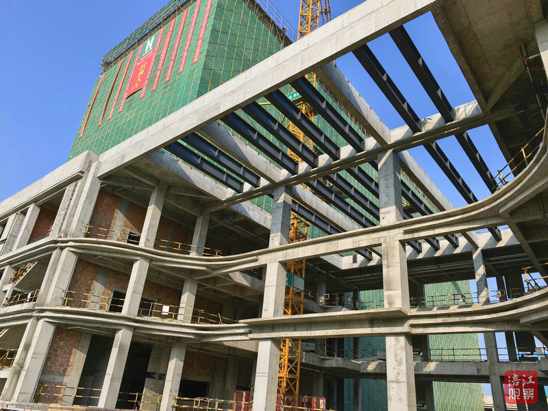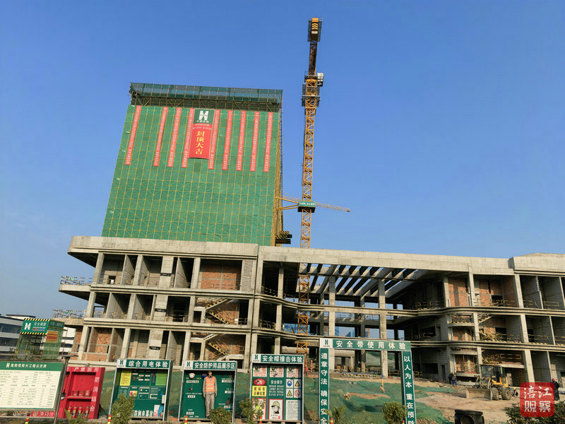 “项目于2025年3月启动土石开挖,于10月26日实现主体结构工程封顶,我们正进行二次结构砌体和水电、消防、暖通主要管道安装工作。”据项目现场负责人黄虎林介绍,预计2026年底可达到初步验收条件。