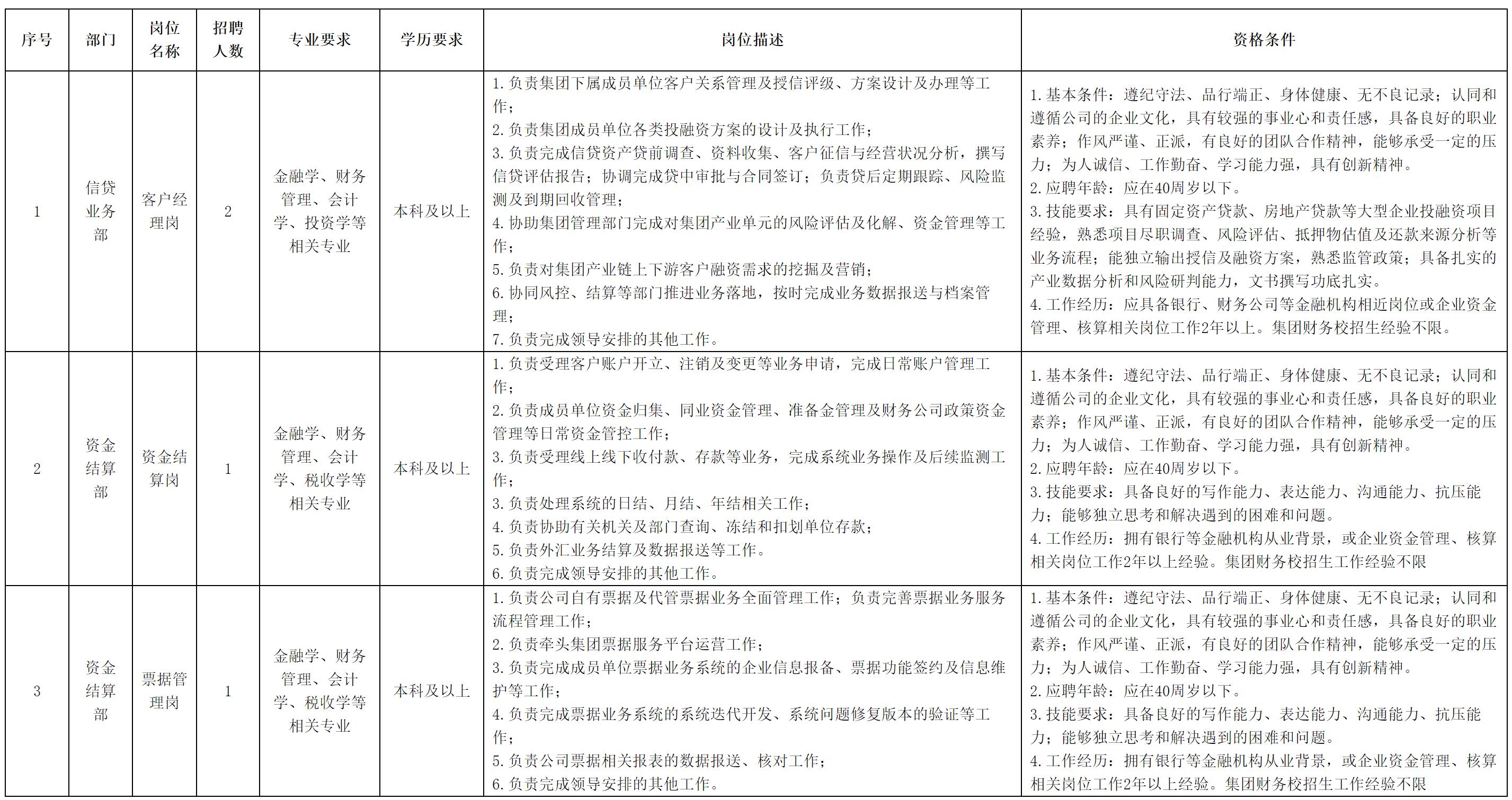 现因经营发展需要,公开招聘客户经理岗、资金结算岗、票据管理岗等岗位: